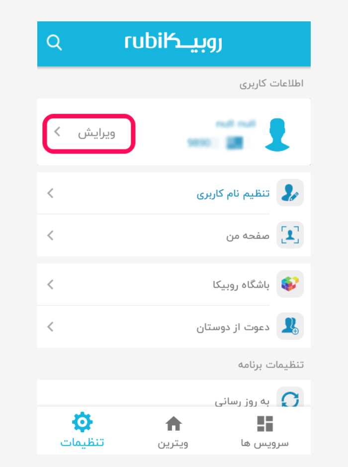 شما میتوانید از طریق بخش تنظیمات اپلیکیشن روبیکا اقدام به ویرایش اطلاعات حساب خود از جمله نام، عکس، بیوگرافی و شناسه کاربری نمایید.