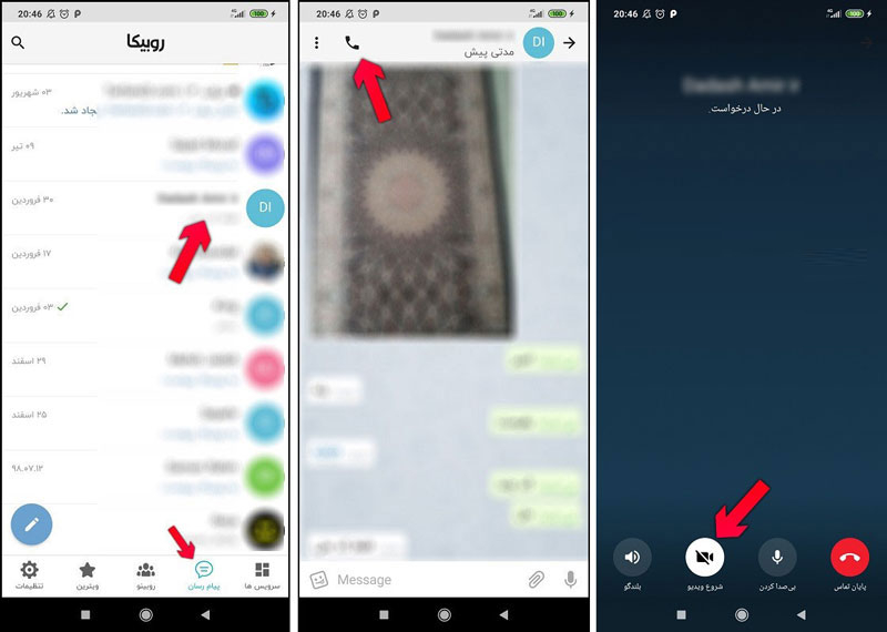 همانطور که اشاره کردیم این نرم افزار داخلی سرویسهای مختلفی را در اختیار کاربران خود قرار میدهد که از جمله محبوبترین آنها میتوان به برقراری تماس تصویری در روبیکا اشاره کرد، برای ایجاد تماس تصویری در روبیکا لازم است مراحل ذیل را طی کنید: